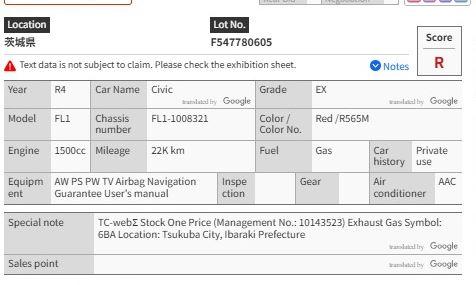 Honda Civic EX ( 6BA-FL1 ) (AT)